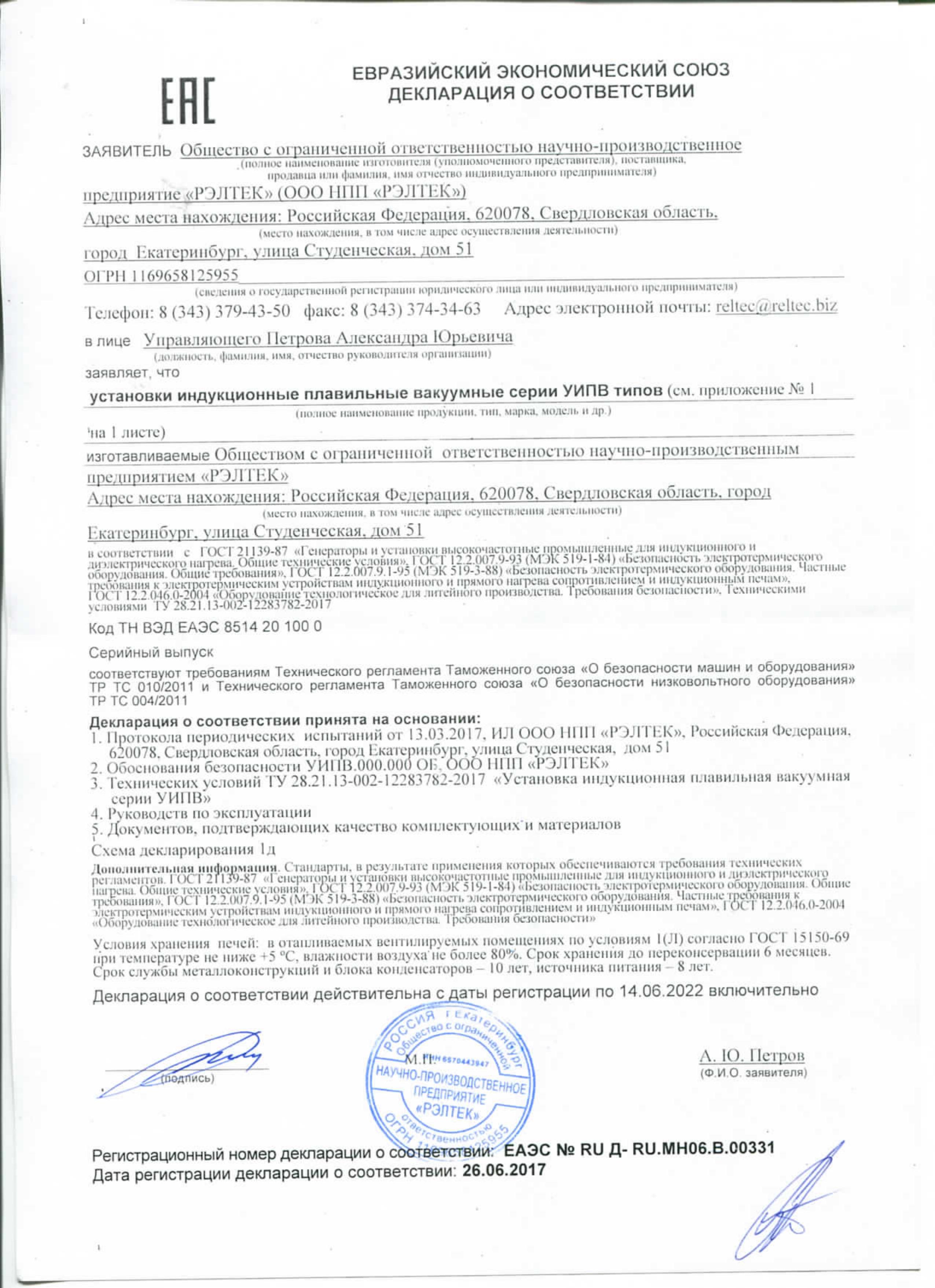 Сертификаты и разрешения на индукционные плавильные установки